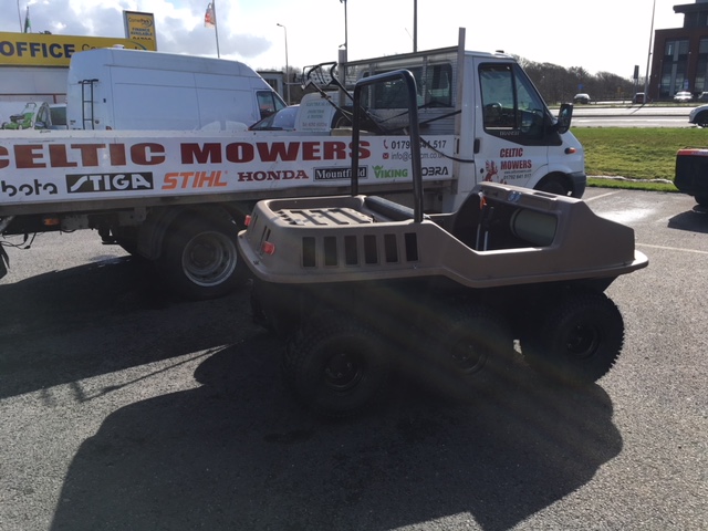 This 6 wheeled amphibious vehicle has been brought in by a customer as it's not running as it should - probably a fuelling issue. Phil can't wait to get to work on the V-twin Briggs & Stratton Vangaurd engine. We see some weird and wonderful things in the workshop but this is up there with the best.